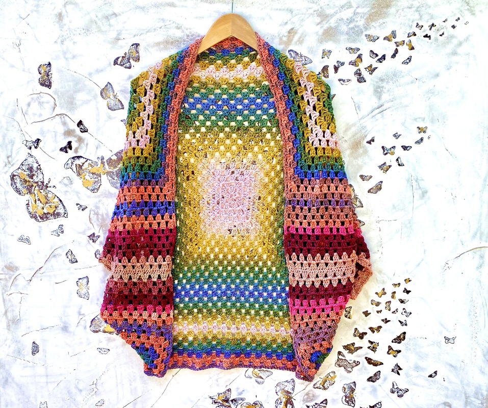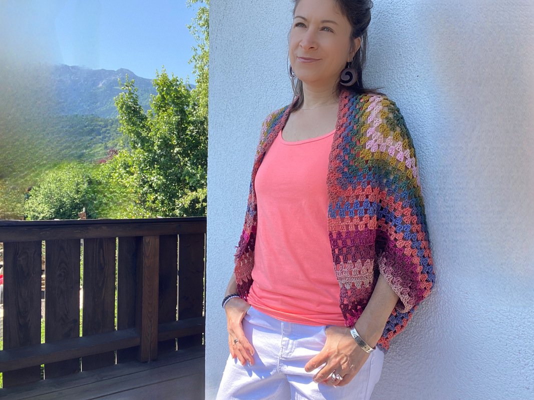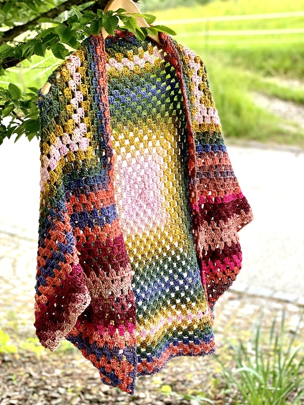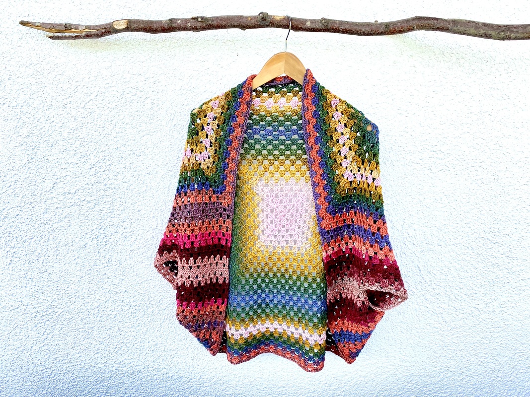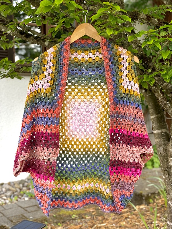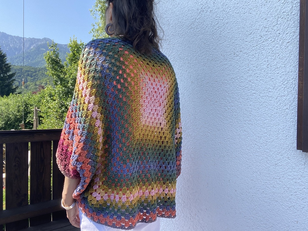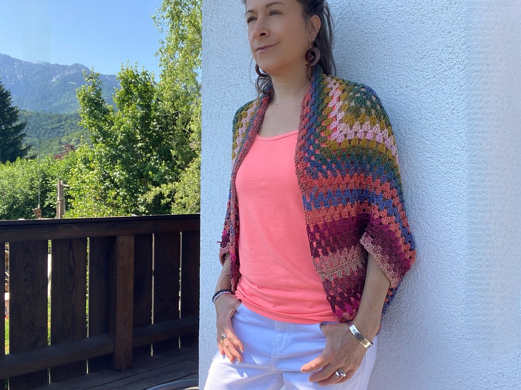 Dieser Sommer wird bunt! Nach dem V-Neck Shirt kommt nun ein fröhlicher Seelenwärmer im angesagten Hippie-Boho-Style daher! Er wird zunächst als Granny Square gehäkelt und dann noch etwas verändert. Es gibt vier verschiedene Größen. Der Seelenwärmer kann aber auch auf jede beliebige Größe angepasst werden.