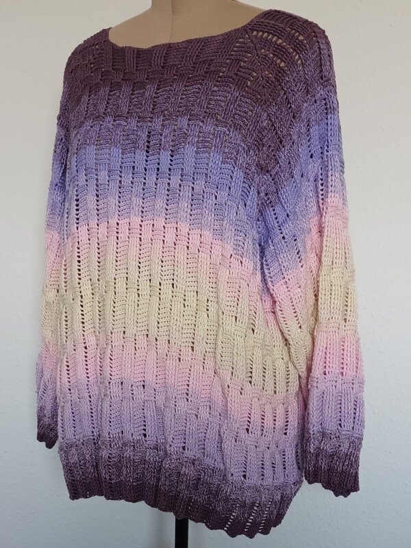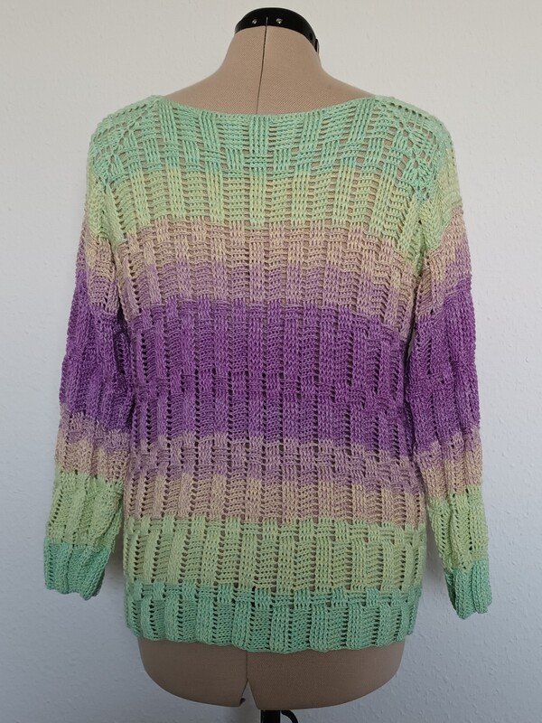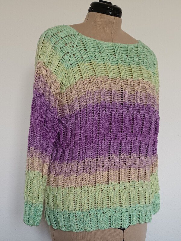 Das Muster wurde von mir entwickelt und auf vielfachen Wunsch ist jetzt, nachdem es bereits ein Tuch, eine Decke und einen Slipover mit diesen Musterelementen von mir gibt, dieser Pulli entstanden.