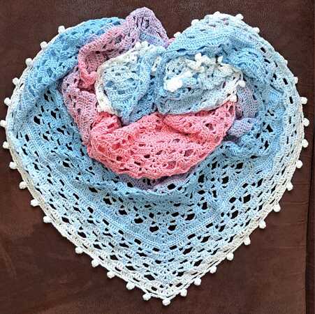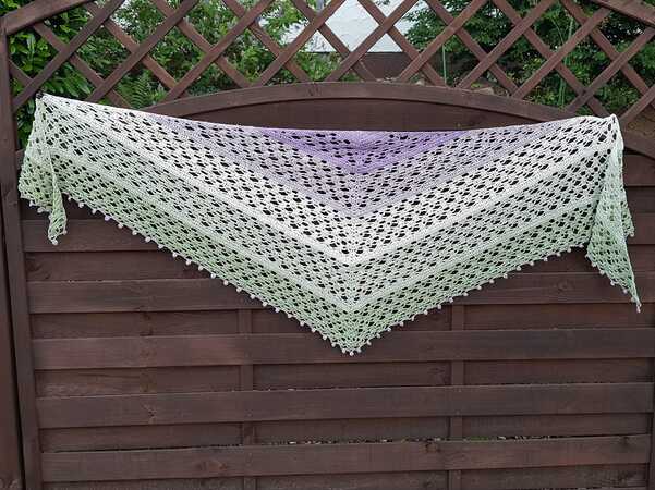 Mad Romance ist ein zauberhaftes flaches Dreieckstuch mit einem abwechslungsreichen und effektvollen Muster und einer raffinierten Abschlusskante.
