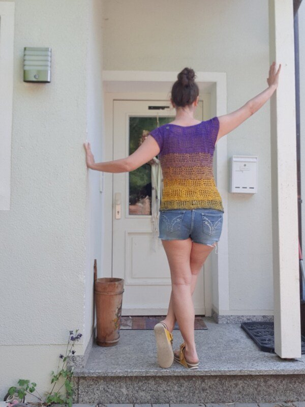 Die Größe 38-40 kommt für das Shirt ohne Ärmel mit nur 600 m 4fädigem Garn aus!