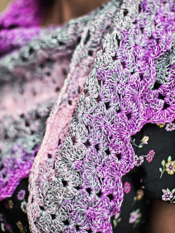 Mit diesen tollen Farben und Mustern ist jedes Tuch der Hit. Ein schöner Farbverlauf führt unser Auge von einem hellen Rosa über Grau zu einem dunkleren Rosa und wieder zurück. Der tolle Farbverlauf entsteht durch den Woolly Hugs Bobbel Mirror. Alle Farben dieser Bobbelserie haben alle einen gespiegelten Farbverlauf. Das bedeutet, wenn ihr etwas größeres vorhabt, könnt ihr einfach den nächsten Bobbel ansetzten. Die Farben passen immer zusammen.