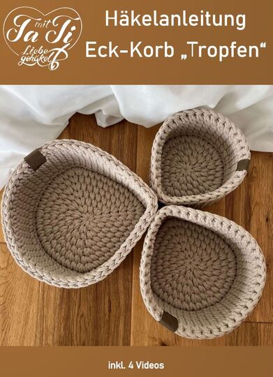 Auf 18 Seiten mit zahlreichen farbigen Abbildungen werden die einzelnen Arbeitsschritte Schritt für Schritt nachvollziehbar beschrieben. Der unsichtbare Rundenabschluss, der Strickstich und der magische Ring werden im Video noch zusätzlich erklärt. So kannst Du mithilfe dieser Anleitung ein stabiles Eck-Körbchen ohne Verbindungsnaht häkeln.