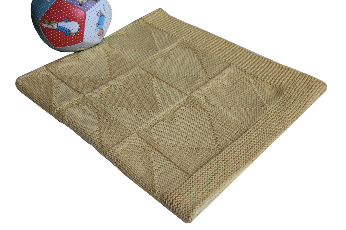 Nach dieser Anleitung kannst Du statt einer Babydecke oder Kinderdecke auch Decke für Erwachsene stricken.Du kannst nach Strickschrift oder schriftlicher Anleitung arbeiten. Links und rechts sieht die Babydecke gleich aus.
