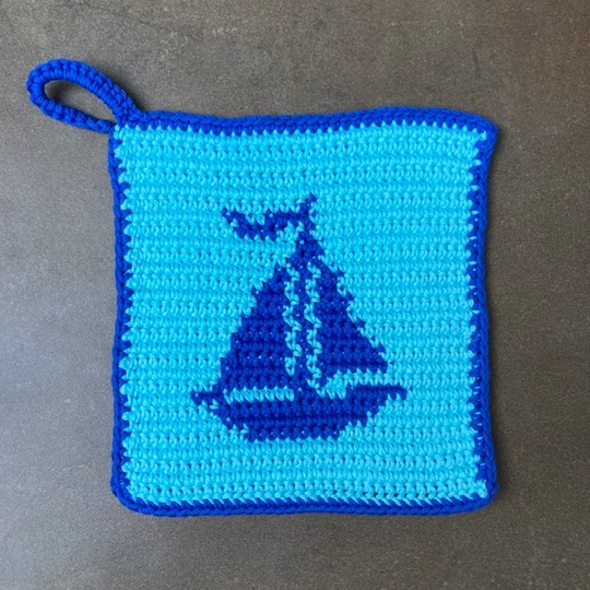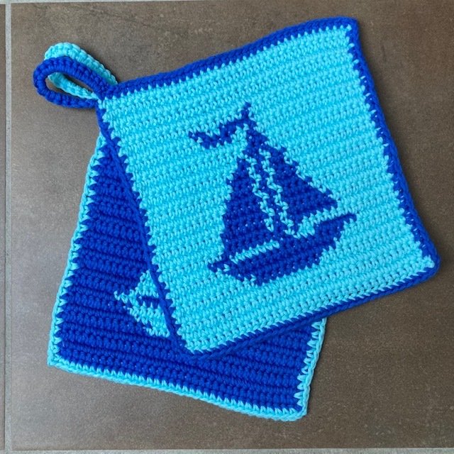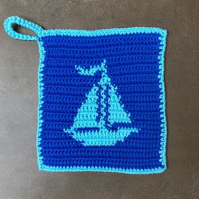 Mit der von mir angegebenen Wolle hat der Topflappen eine Größe von ca 20cm x 20cm.