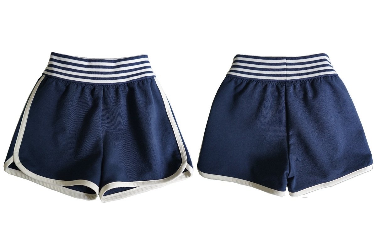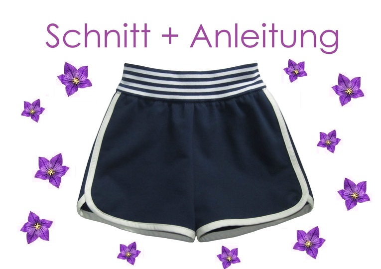 Schnittmuster für eine unkomplizierte kurze Hose einfach zum Reinschlüpfen mit elastischem Bündchenstrick in der Taille und kleinem Seitenschlitz. Dieses Modell ist für weichen und gemütlichen Sweatstoff geeignet, also super für Freizeit und Aktivitäten. Die Verarbeitung vom Saum ist sauber durch den Einfass mit vorgebügelten Schrägbändern, die man um die Kante faltet und festnäht. Diese vorgefalzten Baumwoll-Bänder gibt es in allen Farben, so dass Ihr immer eine schöne Kombi zu Eurem Stoff finden könnt. Auch die Bündchenware gibt es in netten Streifen-Varianten, Ihr könnt also kreativ werden.