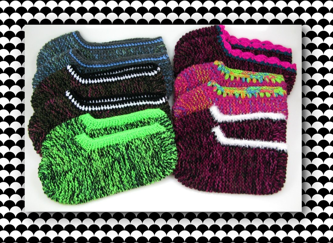 Die Puschen werden mit Ferse und Rundspitze gefertigt.