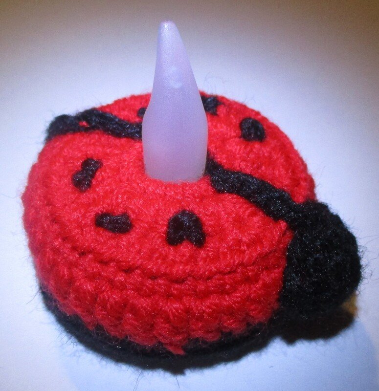 Du erwirbst hier lediglich die Häkelanleitung, um eine Marienkäfer-Hülle für ein elektrisches Teelicht zu häkeln, jedoch NICHT das fertige Produkt.
