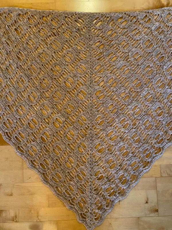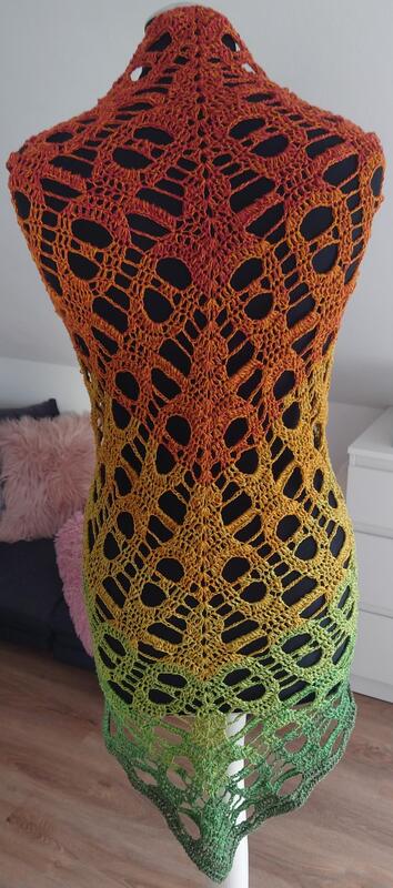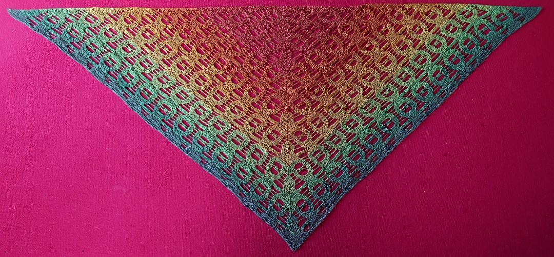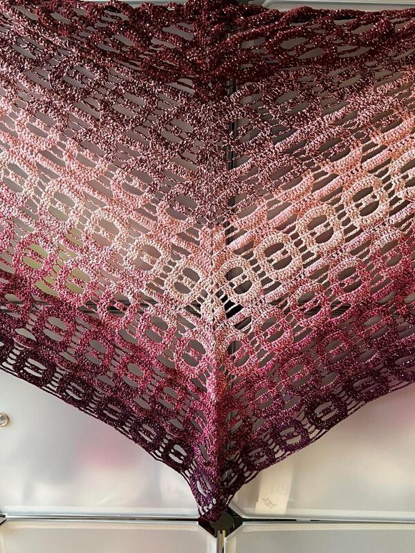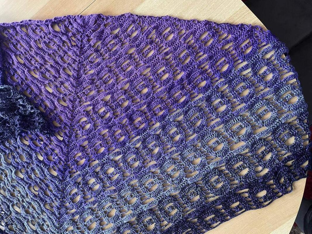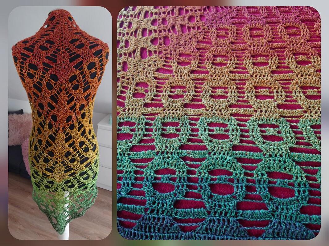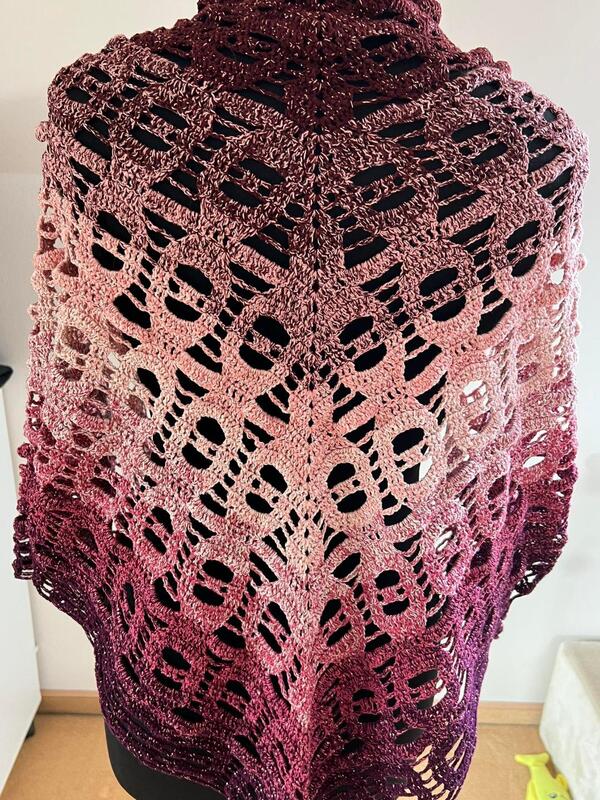 Die Anleitung zum Tuch besteht aus schriftlich ausformulierten Reihen und beinhaltet Häkelschriften.