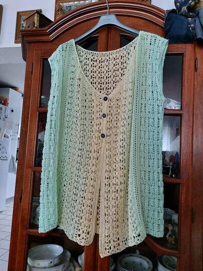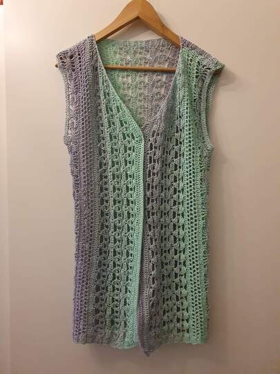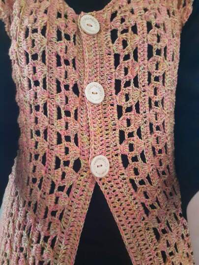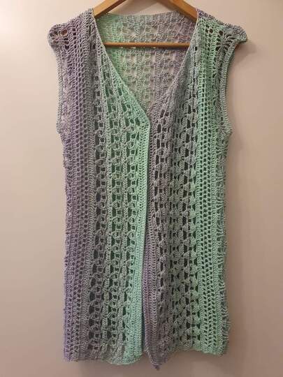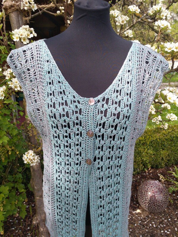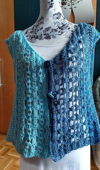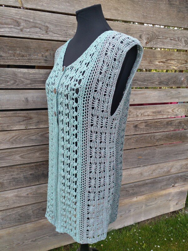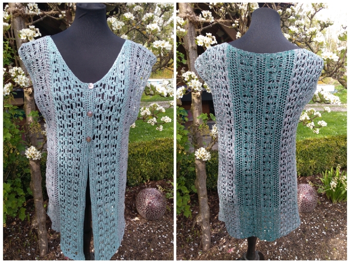 Du bekommt hier eine Häkelanleitung mit Häkelschriften und schriftlicher Anleitung sowie genauen Schritt-für-Schritt – Erklärungen mit Fotos für kniffligere Stellen und genaue Maschenerklärungen für die verwendeten Maschen. Die luftig-leichte Sommerweste kann ohne Aufwand für die Damengrößen 36-56 angepasst werden, ist in jeder Länge machbar und gerade als leichter figurschmeichelnder Überwurf für den Sommer ideal.