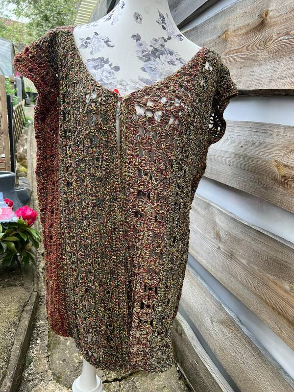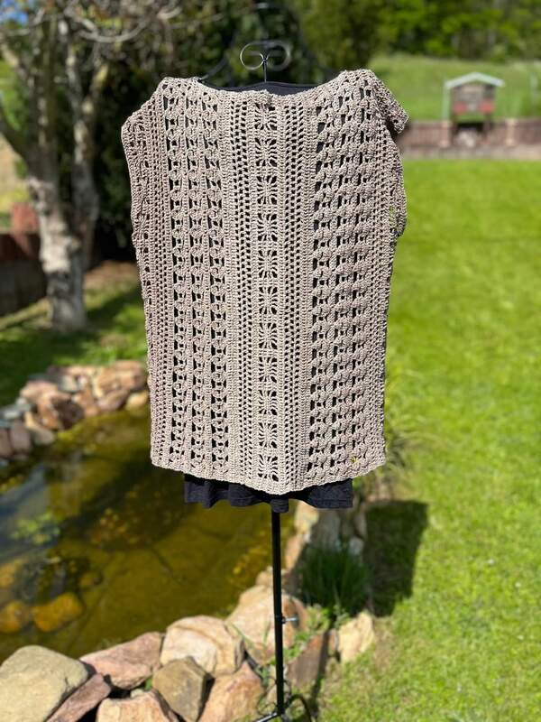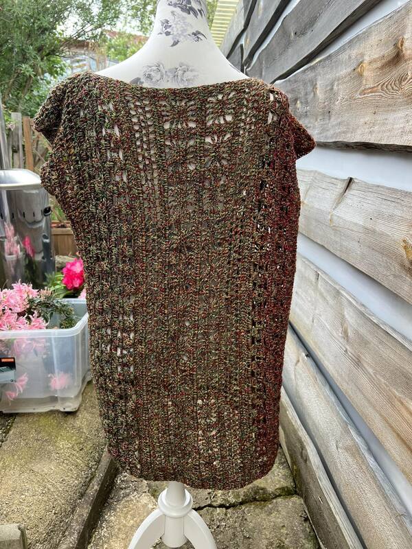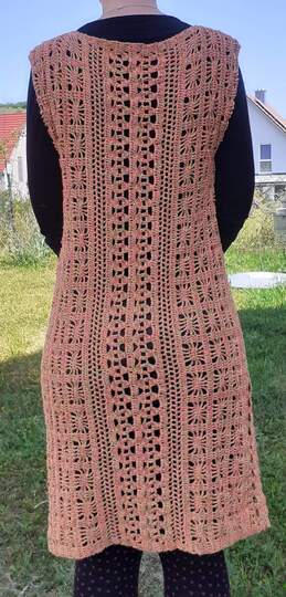 Die Weste kann man in extra lang machen oder in kurz, oder in jeder anderen gewünschten Länge und natürlich auch Breite. Sie wird von einer Seite zur anderen gehäkelt, die Weste kann also jederzeit angepasst werden!