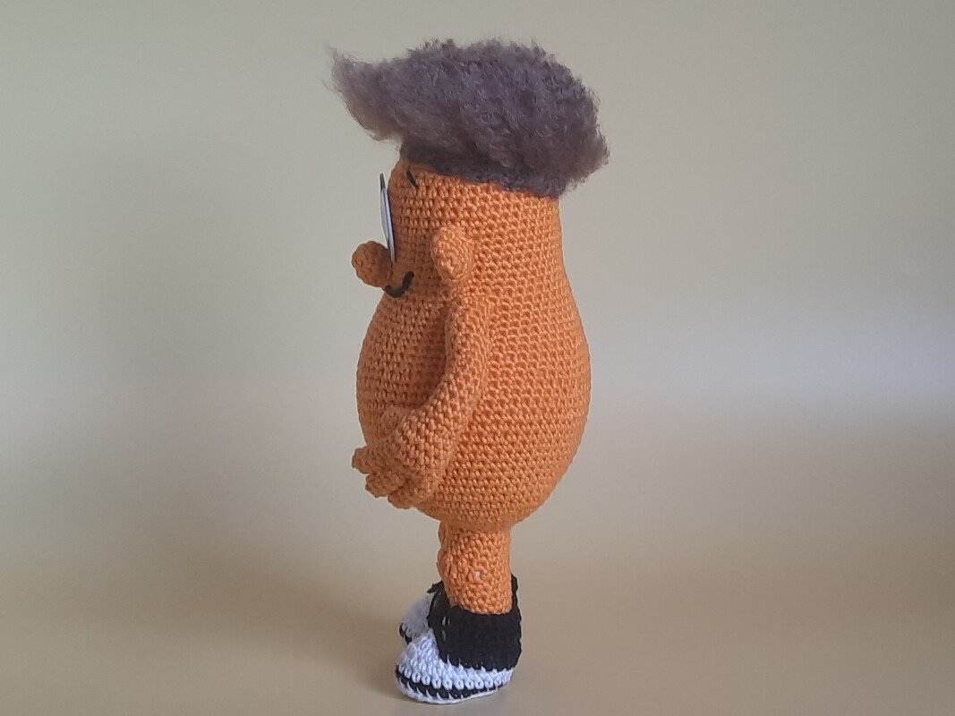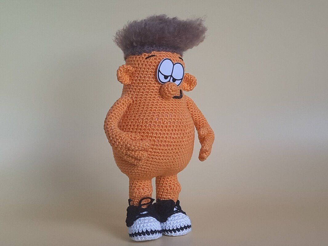 Ich habe die Figur mit einer Nadelstärke von 2,5 und Schachenmayr Catania bzw. einer Nadelstärke von 3,5 und Schachenmayr Bravo gearbeitet.