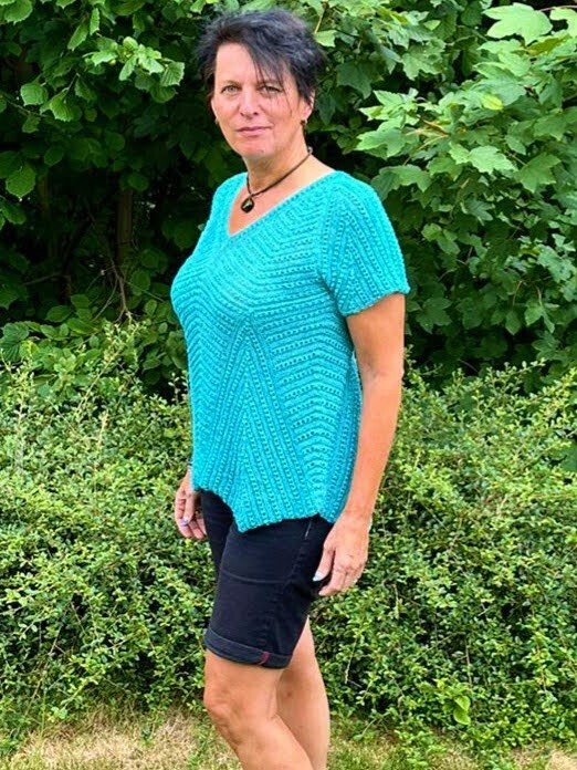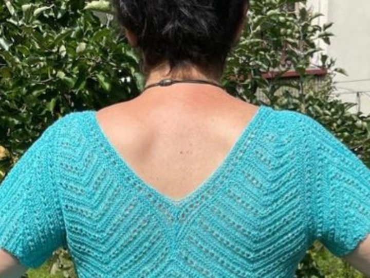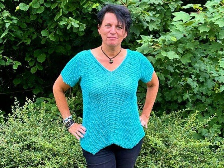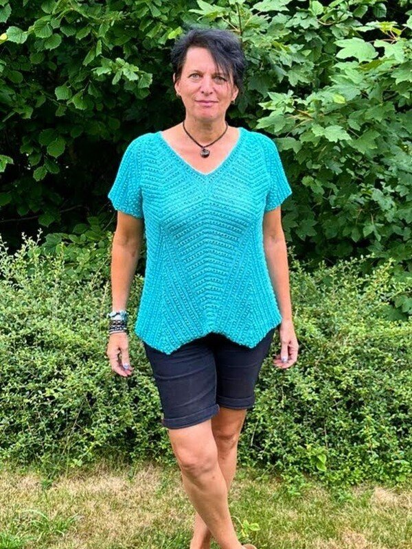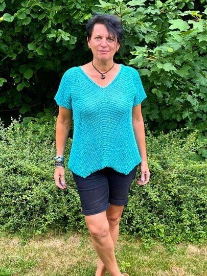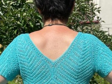 Der Sommerkarl Nr.2 ist ein luftiges Shirt in Patchworktechnik gestrickt und in Größe 40/42 gerade mal 175 g leicht. Ein einfaches Lochmuster lässt die verschiedenen Strickrichtungen beim patchworkstricken gut zur Geltung kommen. Das Shirt ist nahtlos, d.h. die einzelnen Patches werden direkt aneinandergestrickt.