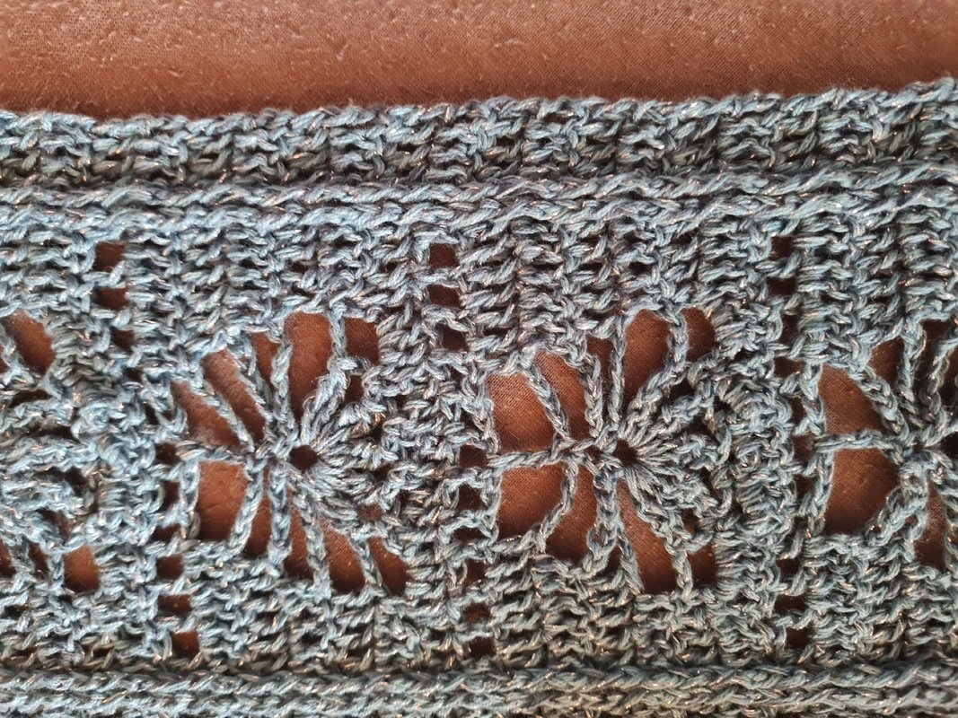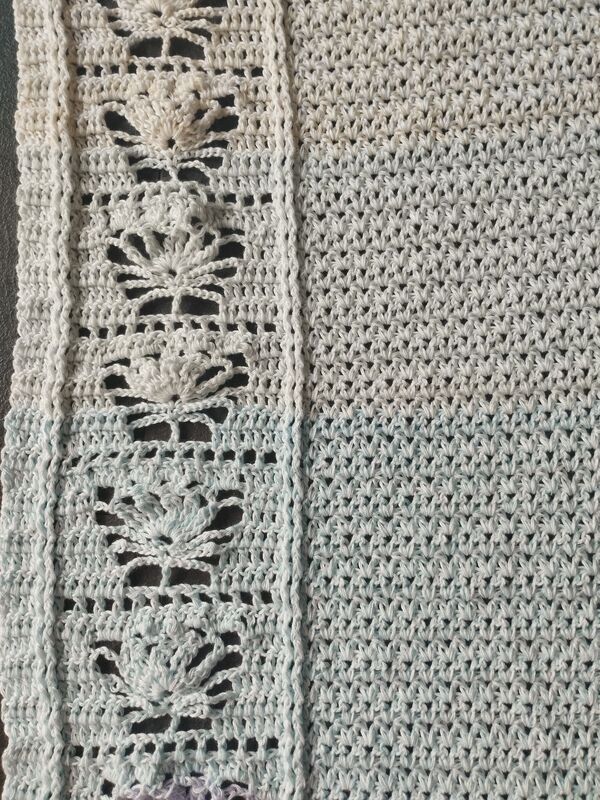 Das Blumenmuster erfordert eine etwas festere Häkeltechnik, während das andere Muster etwas lockerer gearbeitet werden kann. Für das optimale Ergebnis empfehlen wir, eine kleinere Häkelnadel zu verwenden.