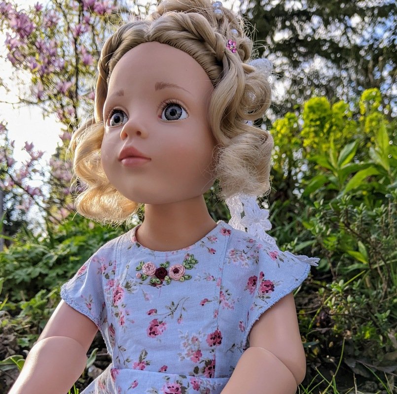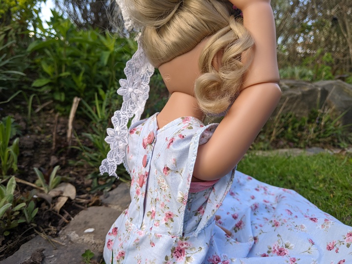 Nähanleitung für ein historisch inspiriertes Sommerkleid. Das Kleid passt gängigen 45-50 cm-Stehpuppen.