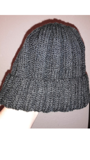 Man kann diese Mütze mit Bündchenrand zum Umschlagen stricken, so wie hier auf dem Foto, oder wie einen Beanie mit einfachem Bündchenrand.