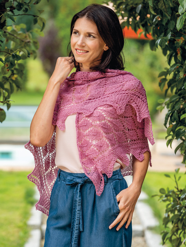 Das 180 x 100 cm große rosafarbene Tuch lässt sich dank der ausführlichen Strickanleitung inklusive Strickschriften selbst für etwas ungeübtere Strickerinnen sicher problemlos nacharbeiten.
