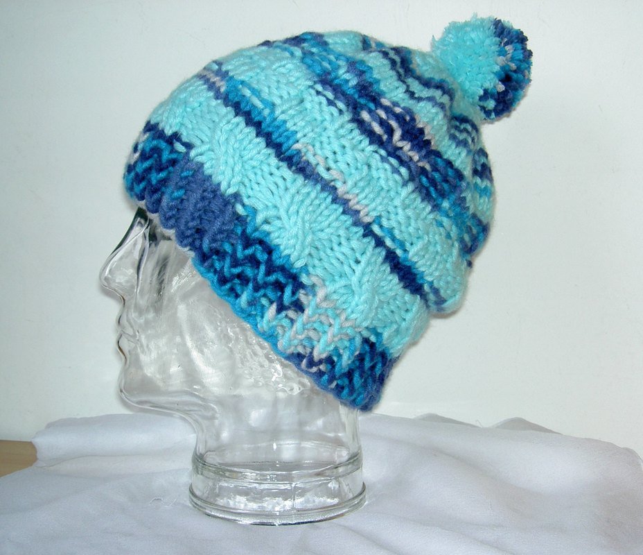 Gestrickt aus MyBoshi Nr. 1 (delphin und meerblau) mit einem Nadelspiel in Stärke 6. Sie benötigen zusätzlich eine Hilfsnadel (Zopfstricknadel) und sollten einen Bommel herstellen können. Die Mütze passt Jugendlichen und Erwachsenen und hält den Kopf schön warm. Ebenso können Sie jede andere Wolle mit einer Lauflänge von 55 m/50 g verwenden (z. B. Boston / Boston Style).