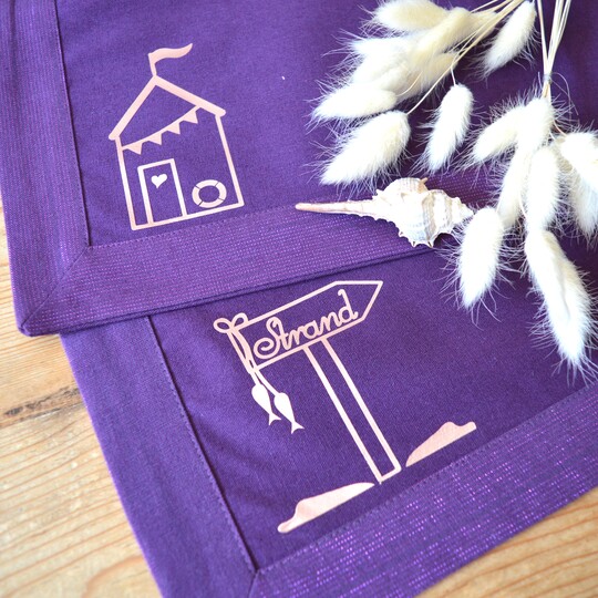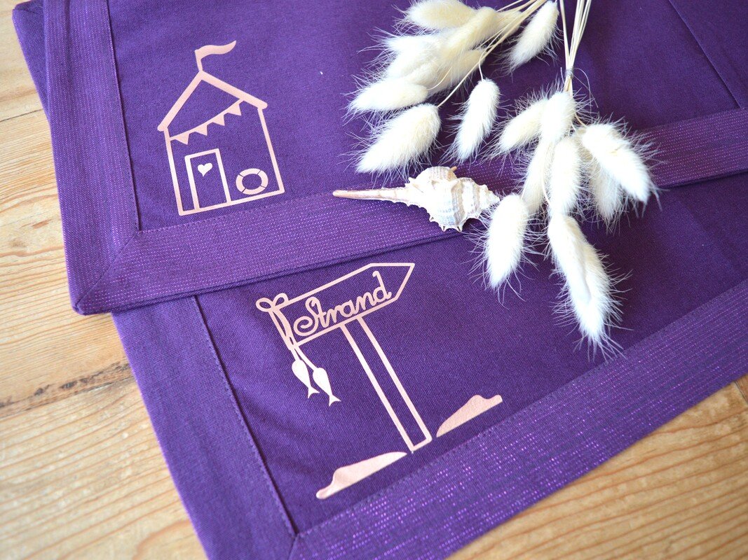 Ausgeschnitten aus Textilfolien verschönert er Taschen, Beutel, Kleidung und Kissen.