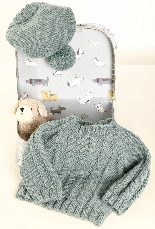 Unglaublich hübsch ist dieses Strickset aus Pullover und Mütze aus 100 % Schurwolle von Lana Grossa. Auffallend und schön beim Pullover ist das ab der Mitte gegengleich gestrickte Zopfmotiv, das von glatt linken Maschen eingerahmt wird. Die Mütze dagegen ist glatt rechts gearbeitet und wird von einer dicken Bommel gekrönt. Mit dieser ausführlicher Strickanleitung inkl. Strickschriften und Schnittmuster lassen sich der Pulli in den Größen 56–86 und die Mütze für 34–39 cm Kopfumfang problemlos auch für etwas ungeübtere Strickerinnen nacharbeiten.