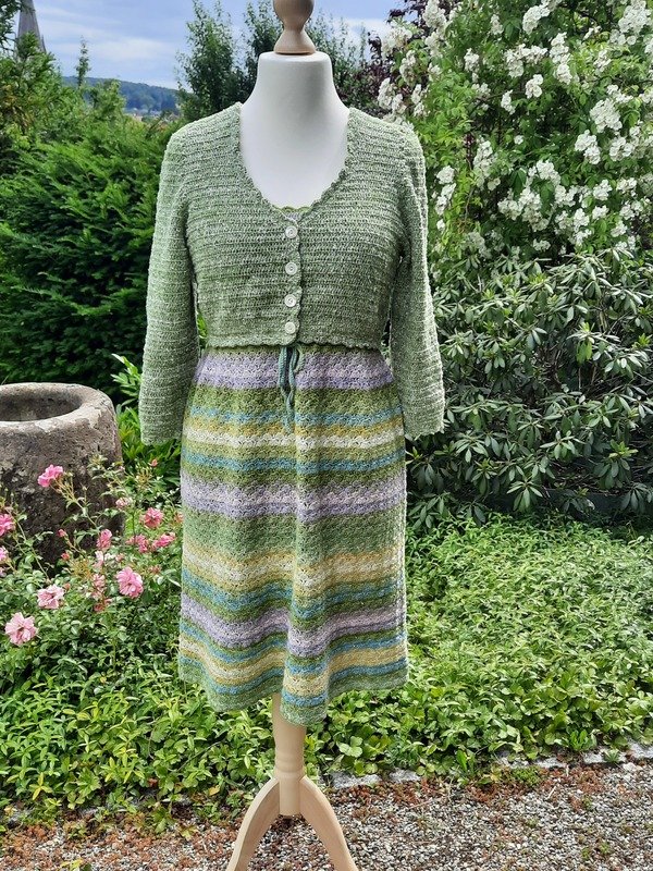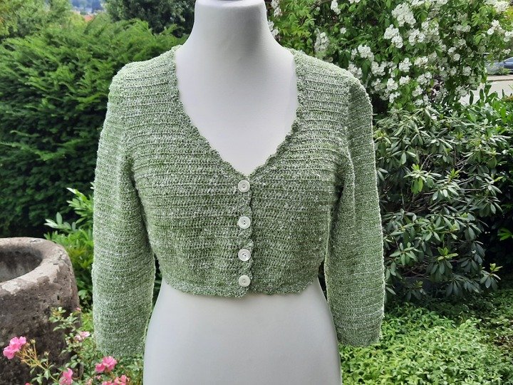 Die Jacke passt sehr gut zu meinem Häkelkleid "Silene", kann aber natürlich zu allen Tuniken und Kleidern mit Unterbrustnaht getragen werden. Die Ärmel sind dreiviertellang, du kannst die Länge aber nach eigenem Geschmack anpassen.