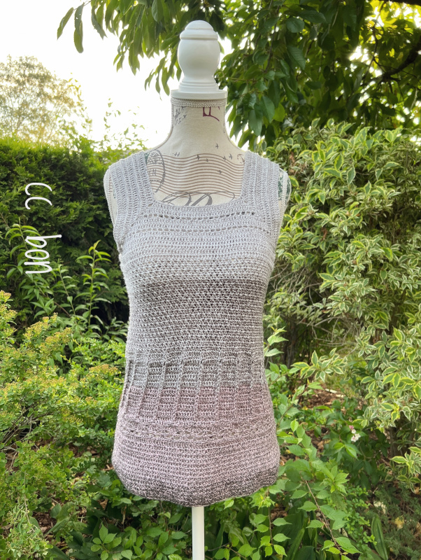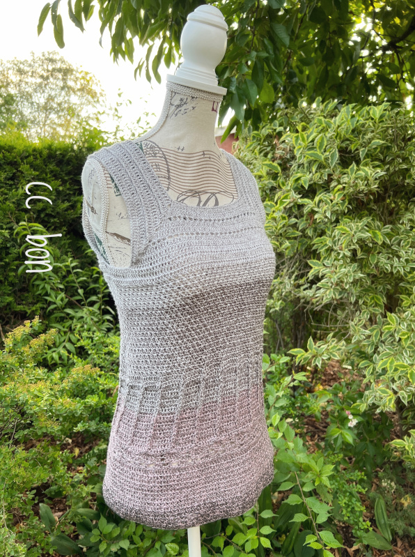 In der vorliegenden Anleitung beschreibe ich das Häkeln eines Trägershirts, das in einem Stück von oben nach unten in Runden gearbeitet wird. Die Runden sind maschenweise beschrieben. Skizzen für die Form und für die einzelnen Muster sind als Schema bzw. Häkelschrift beigefügt. Dieses Shirt ist für Größe L beschrieben. Ich gebe im Verlauf der Beschreibung Hinweise, wie die Größe kleiner oder größer beeinflusst werden kann. Aufgrund