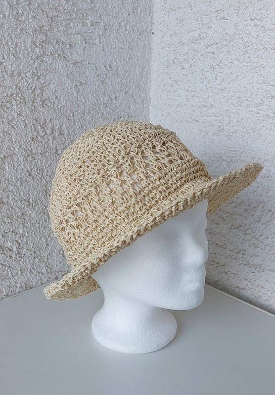 Häkelnadel Nr. 3 ode 4 , je nachdem welches Garn du Dir gekauft hast, verwende eine entsprechende Häkelnadel. Die Nadelstärke ist meistens auf der Banderole angegeben. Ich habe den Hut mit Baumwolle und Nadel Nr.3,5 gehäkelt. Du kannst den Hut als Sommerhütchen auch aus dem Papiergarn Raffia herstellen.