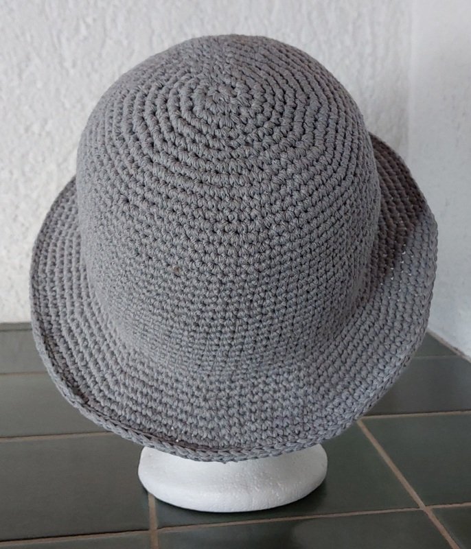 Dieser Hut wird nicht von unten gehäkelt, sondern beginnt oben mit einem magischen Ring.