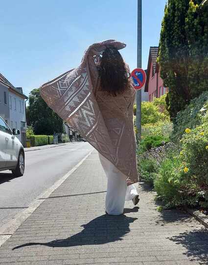 Die Länge ergibt - je nach Material und Häkelweise - immer etwa 190cm-200cm