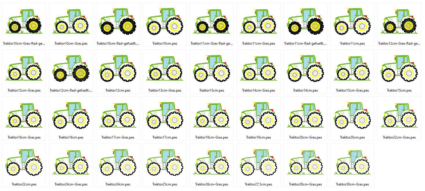 Ihr bekommt den coolen Trecker in allen Größen von 10cm bis 27,5cm ohne Gras und von 10cm bis 30cm mit Gras.