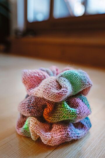 Diese süßen Haarbänder sind ein absolutes Statement-Piece wenn es um Haar-Accessoires geht! Sie sehen nicht nur toll aus, sondern sind auch noch schonend für deine Haare und super für Strickeinsteiger - du lernst nämlich perfekt mit dem Nadelspiel zu stricken. Die kleinen Scrunchies eignen sich auch super zum verschenken!