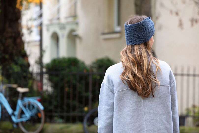Du kannst das Stirnband als breite oder schmale Variante stricken.