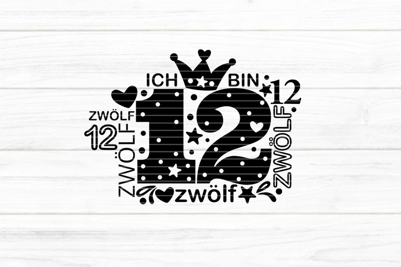 Zahl Zwölf Plotterdatei SVG DXF FCM