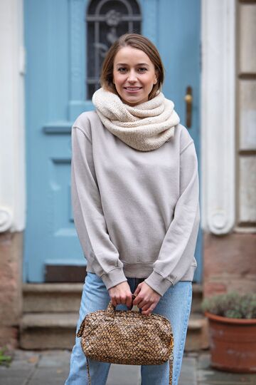 x 2,5 und voilá: Er passt garantiert, wenn du die Maschenzahl entsprechend anpasst. Je höher du ihn strickst, desto mehr Umfang benötigst du.
