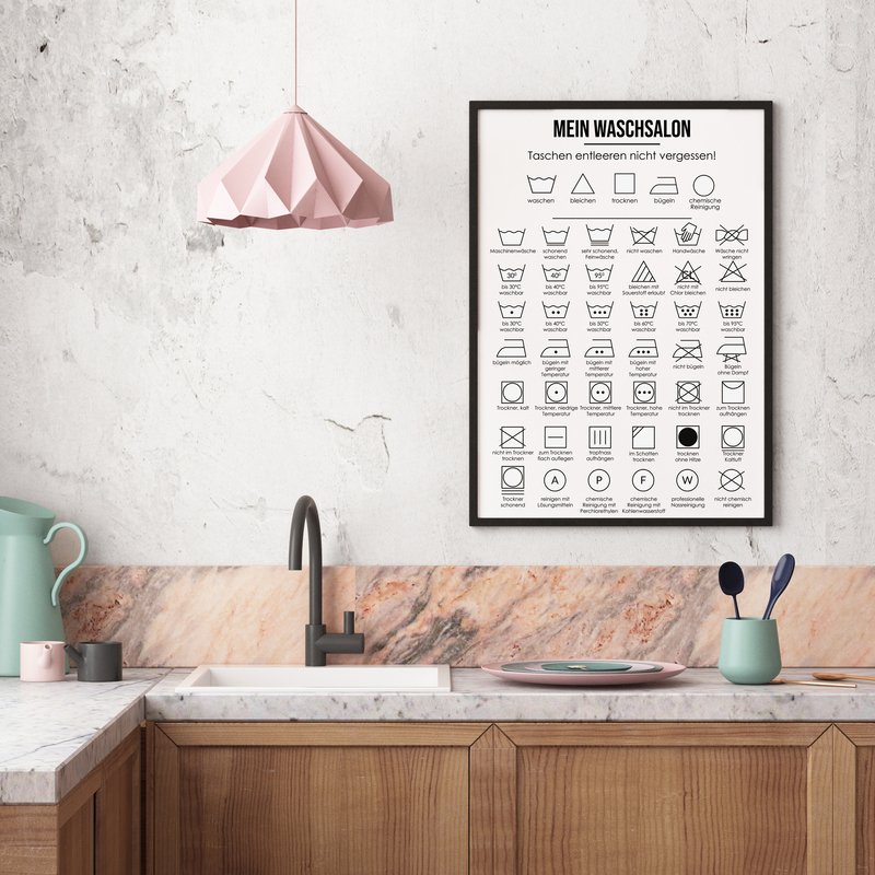MOTIV: Ein liebevoll gestaltetes Poster mit allen gängigen Waschsymbolen.