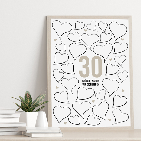 Jetzt können die Geburtstagsgäste, die Familie und Freunde 30 Gründe in die Herzen schreiben, warum die beschenkte Person geliebt wird.