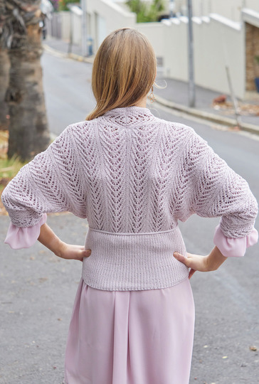 Dieser Pulli mit Wickeloptik und hohem Rippenbund beeindruckt durch seine Ajourmusterstreifen, die an den Vorderteilen durch die übereinander gelegten Teile schräg verlaufen. Bei dem raffiniert konzipierten Pullover aus reinem Baumwollgarn werden Rückenteil und Ärmel bzw. Vorderteil, mitsamt Schalkragen, und Ärmel in einem Stück gestrickt. Ärmelkanten und die Schalkragenränder bekommen zum Schluss noch eine mit Kettmaschen gehäkelte Einfassung. Zusätzlicher Hingucker: Die Strickliesel-Schnur, die als Kordel zum Binden zum Einsatz kommt. Eine Anleitung gibt es zum Downloaden in den Größen 36/38, 44/46 und 50/52.