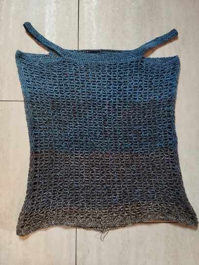 Für mein Top habe ich einen 4-fädig + Beilauffaden 50/50 Bobbel verwendet und mit NS 3,75 benutzt. Mein Verbrauch lag bei ca 600m/160g.