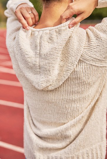 Besonders sportlich kommt dieser Strickhoodie daher, der aus dem hellgrünen Garn „Avino“, einem elastischen und weichen „Fein-Bouclé Garn“, Raglan gestrickt wird. Gestrickt wird glatt rechts und im Rippenmuster. Die Bindebänder entstehen aus eine 180 cm langen Strickkordel, die auch mit einer Strickliesel oder einer Strickmühle gearbeitet werden kann. Die ausführliche Strickanleitung inklusive Schnittzeichnung ist für die Größen 36/38, 40/42 und 44/46 notiert und erleichtert das Nachstricken auch für etwas ungeübtere Strickerinnen.