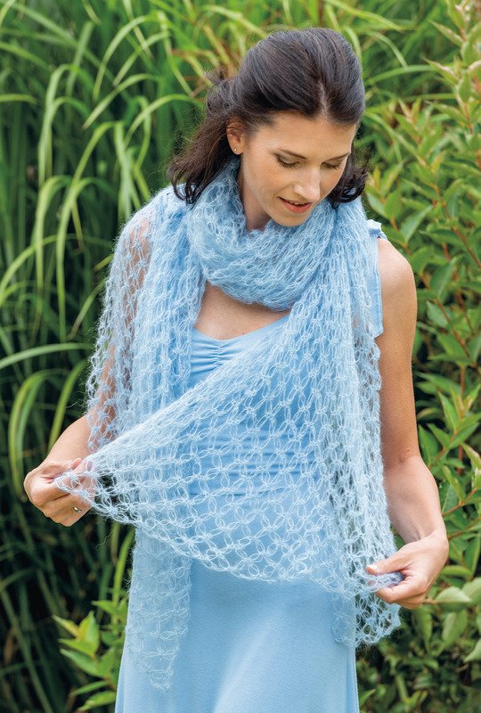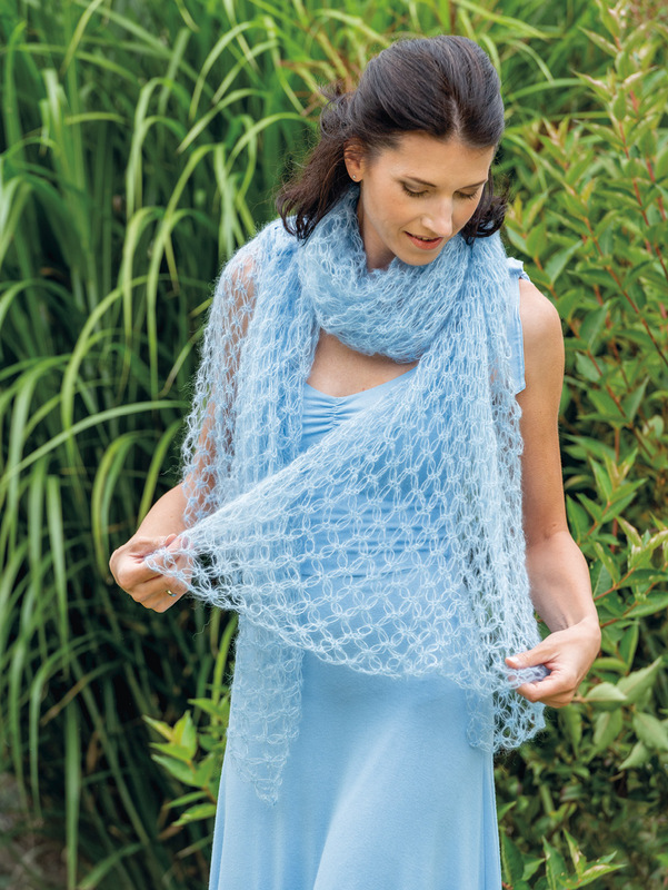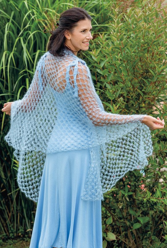 Mit diesem luftigen Schulterschmeichler lässt sich der Sommer entspannt genießen, denn auch im Sommer kuscheln wir uns gerne mal ein, erst recht, wenn das Mohairgarn mit Seide ein Traum von Leichtigkeit ist.