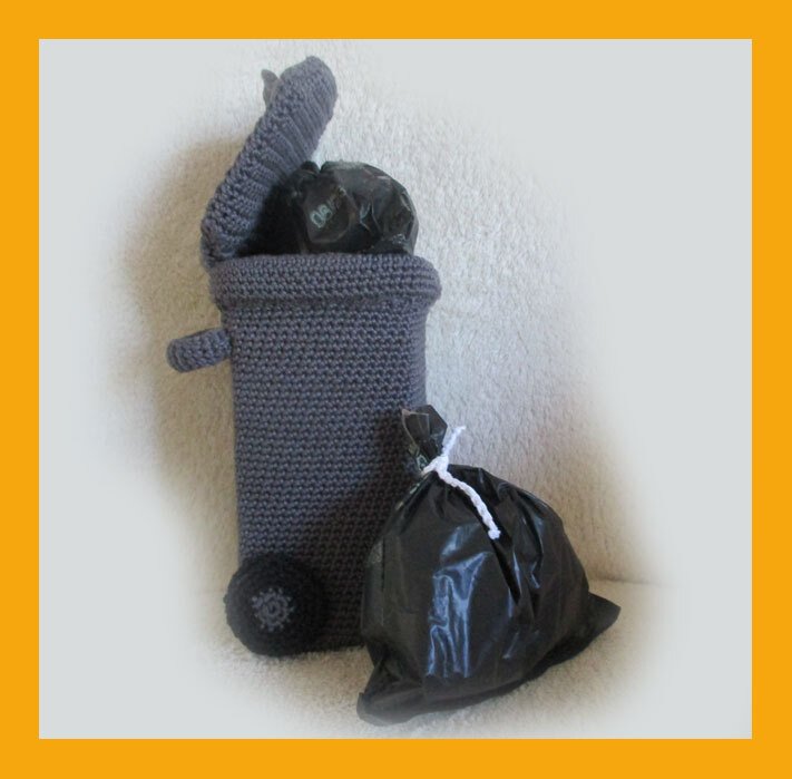 1 leere Packung Joghurt à 1 Liter, plus Deckelstück Pappe 20 x 20 cm (= für den Abfallbehälter kann auch Pappe in der Größe des gehäkelten Abfallbehälters verwendet werden = Boden 7x 7 cm, Seiten 4 x 15 cm)