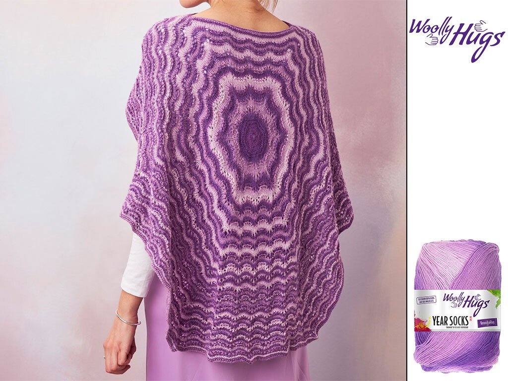 Dieser Poncho ist aus weichem, wärmendem Garn und wird in Runden gearbeitet, was ihn besonders einfach und schnell zu stricken macht. Das Wellenmuster verleiht dem Poncho einen einzigartigen Look und macht ihn zu einem echten Hingucker.