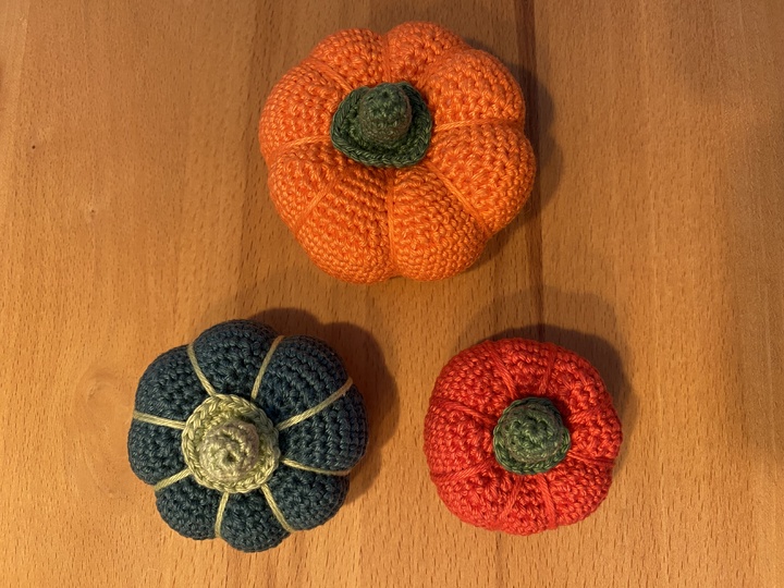 Meine Kürbisse wurden im Durchmesser 8 cm, 6,5 cm und 5 cm