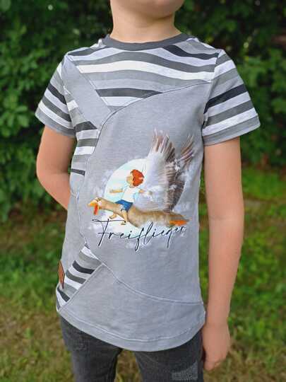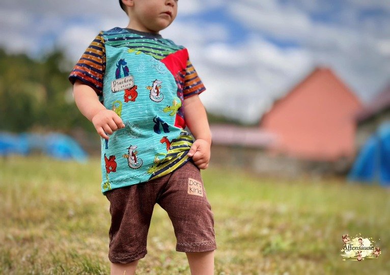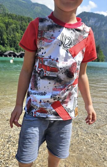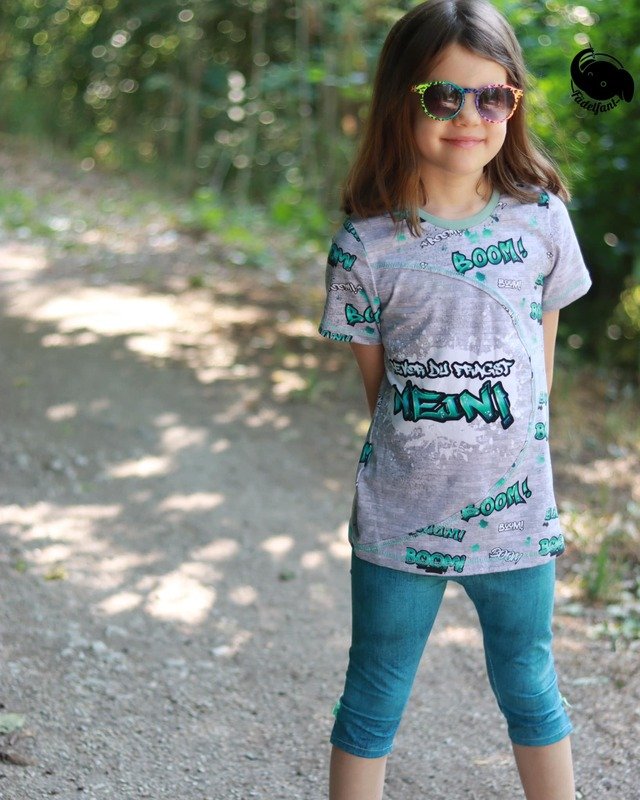 Ideal für Panel-Stoffe oder als Resteverwertung, mit Sonnenstrahl-Teilungen, die du nutzen kannst, aber nicht musst. Selbstverständlich kannst du auch nur einzelne Teilungen wählen, das Shirt läd zum kreativ werden ein!
