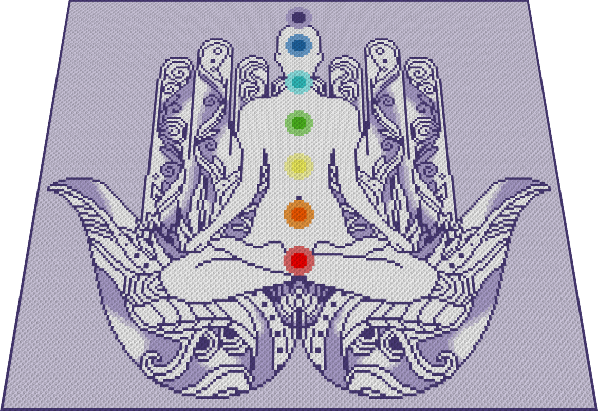 Chakras-Hamsa ist ein digitales Diagramm, das für verschiedene Häkeltechniken verwendet werden kann, hier speziell für Ecke zu Ecke = C2C oder Mini C2C.