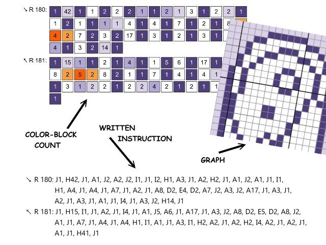 -farbige Zahlen-Blöcke für jede Zeile für C2C-Technik