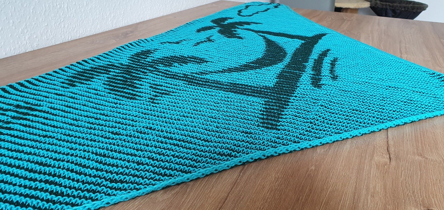 Das fertige Tuch hat bei mir eine Größe von etwa 170cm (Breite) x 78 cm (Tiefe).