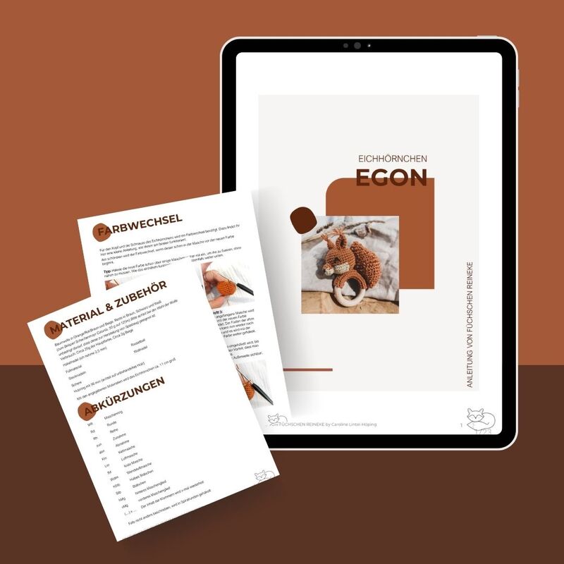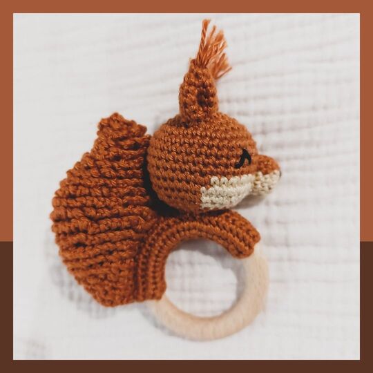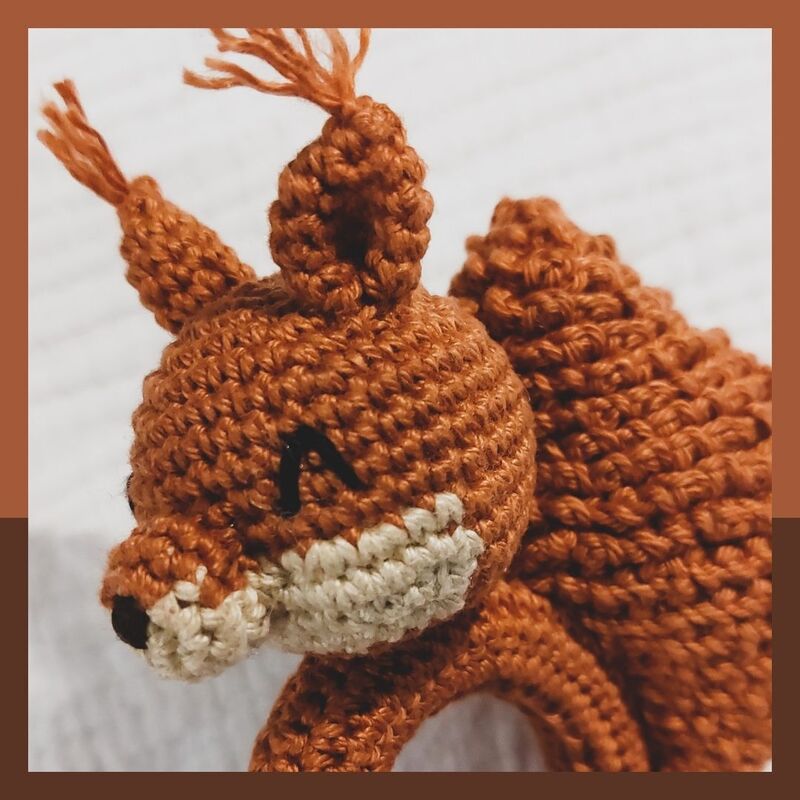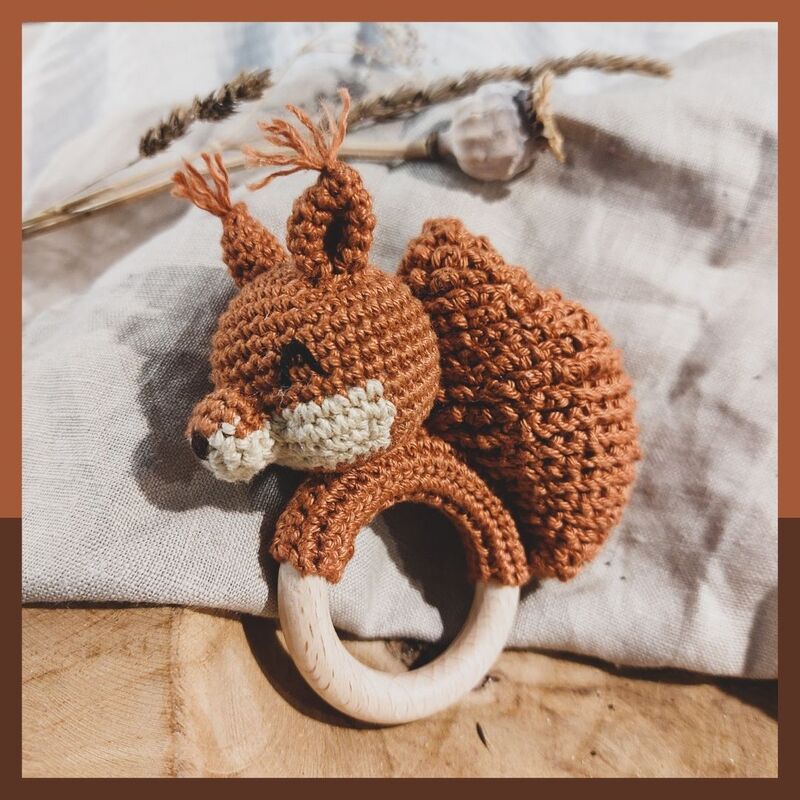 Mit dieser PDF-Häkelanleitung kannst du dir ganz einfach deine eigene kleine Eichhörnchen Rassel häkeln.
