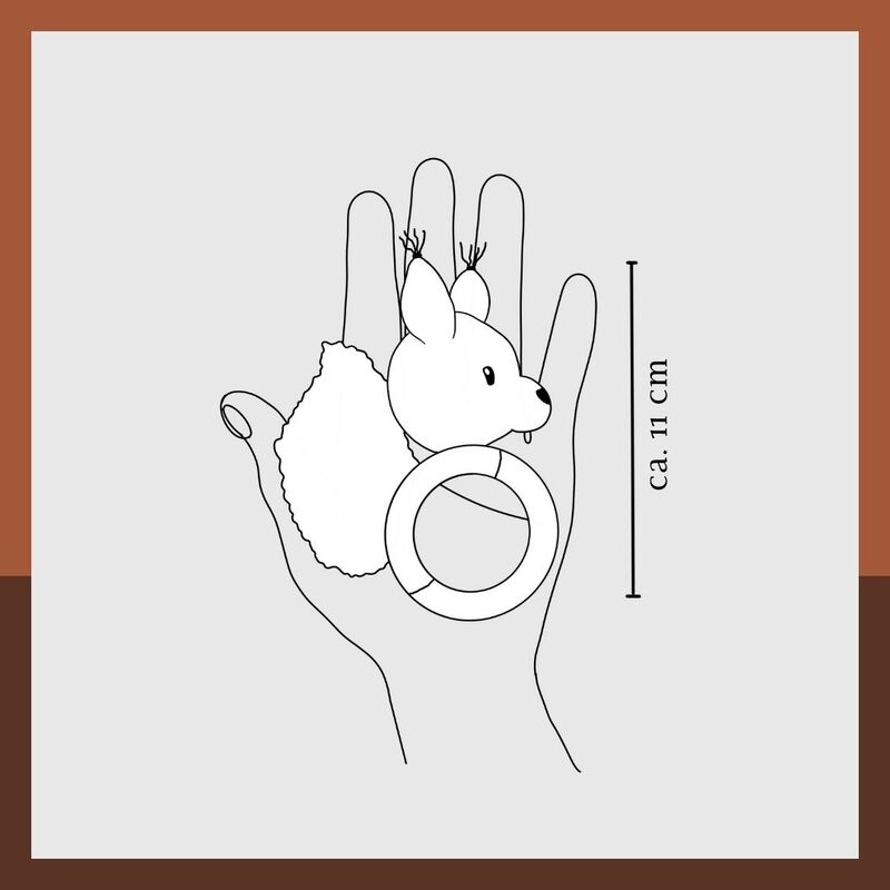 Mit den angegebenen Materialien wird die Eichhörnchenenrassel ca. 11 cm groß.