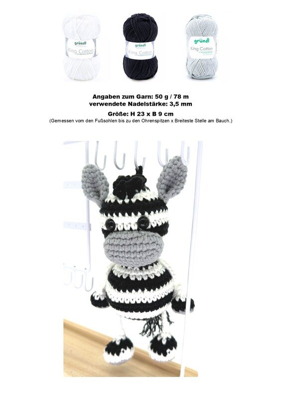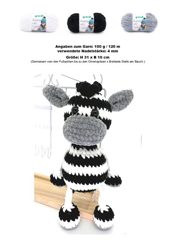 Mit dieser Häkelanleitung könnt ihr euch das im Artikelbild gezeigte Zebra zaubern.