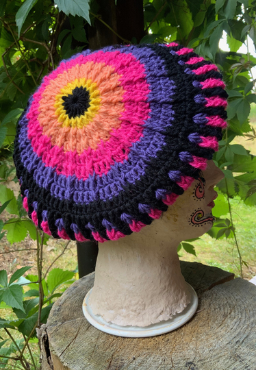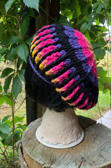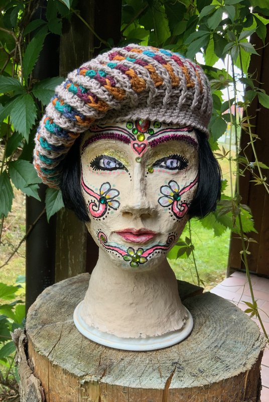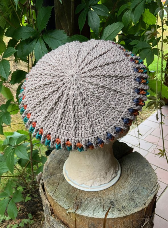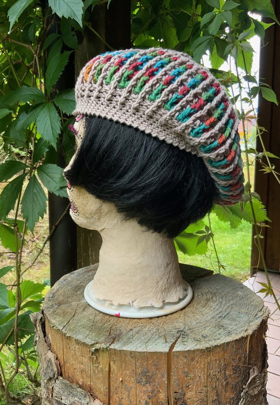 Baskenmütze BIRKIN..ein hübsche Idee für ein Baskenmütze...ein spannendes , aber einfaches Muster......die Streifen an der Seite mit unterschiedlichen Farben...gibt auf jeden Fall einen guten Effekt..sieht kompliziert aus..ist aber ganz einfach!